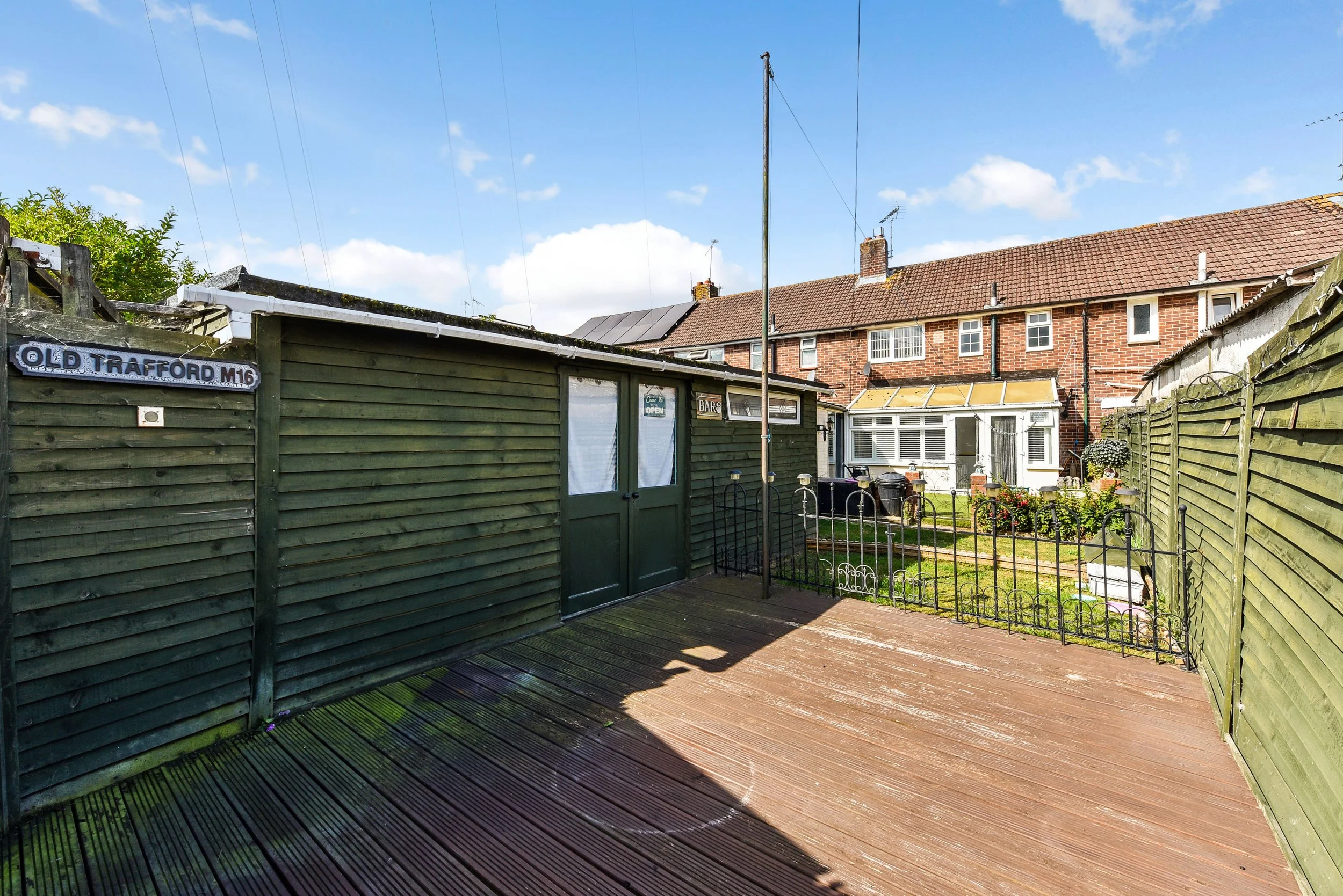 A delightful garden room extends the living space, perfect for enjoying the outdoors or as a play area for children. The large, low-maintenance back garden is a true gem, complete with a summer house and additional storage space, making it ideal for those who appreciate outdoor living without the hassle of extensive upkeep. The drop curb to the rear adds convenience for access.